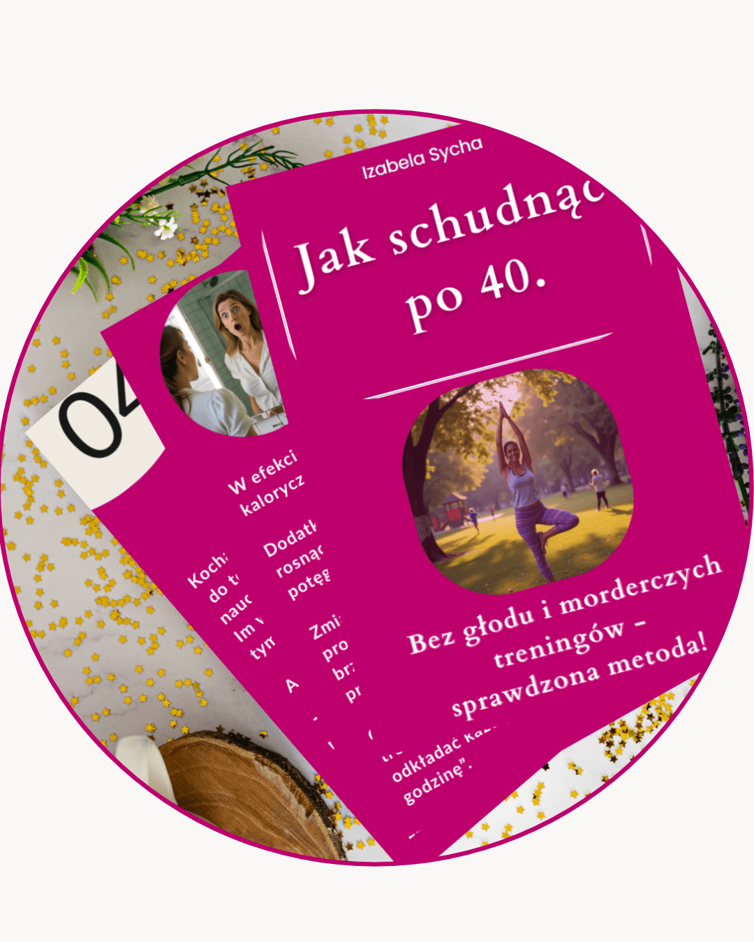 – gotowy plan krok po kroku, który działa z Twoim ciałem po 40 – bez głodu, bez liczenia kalorii, bez presji.